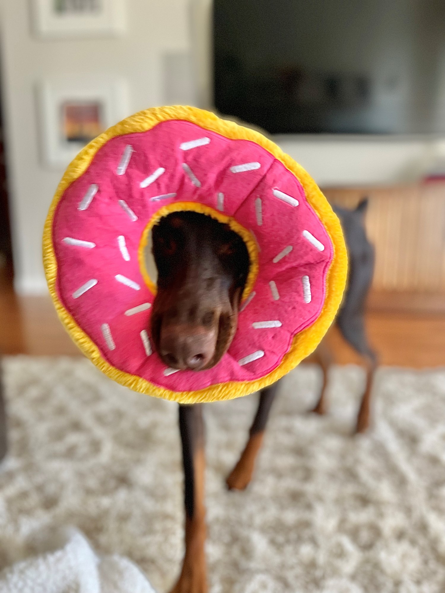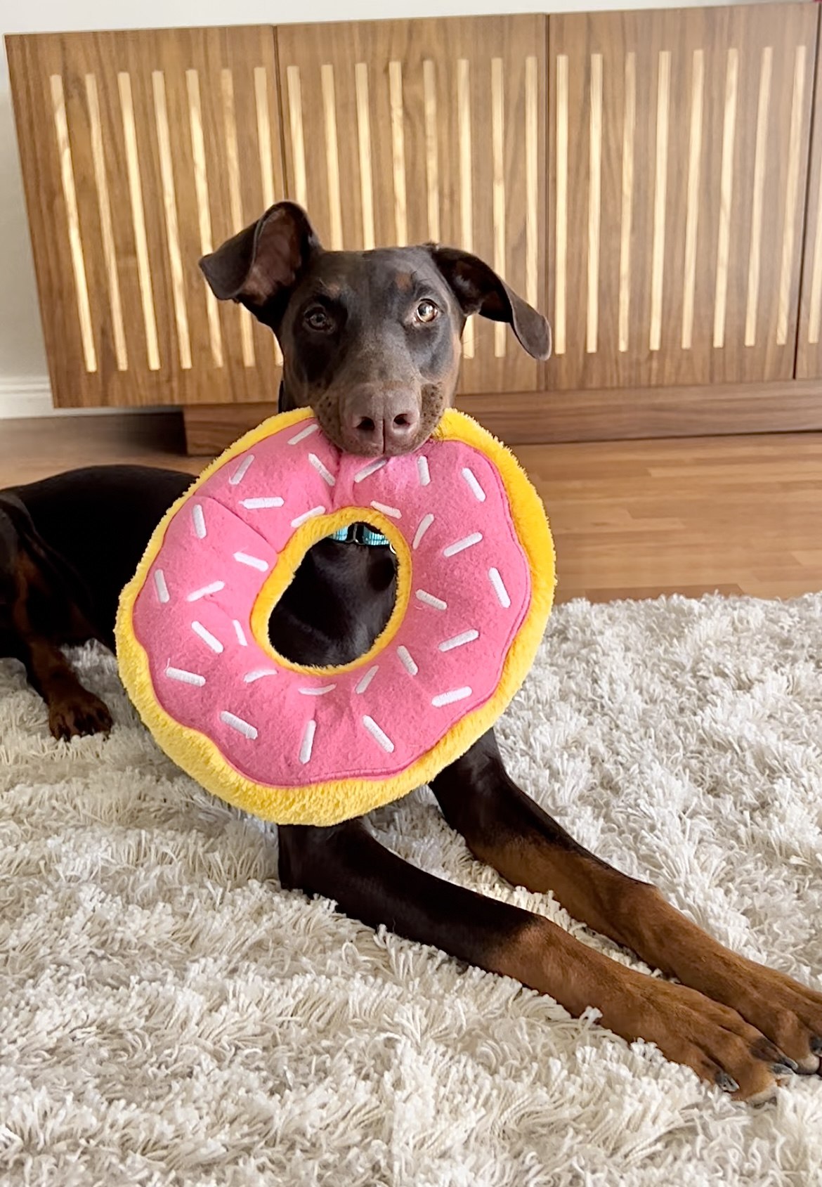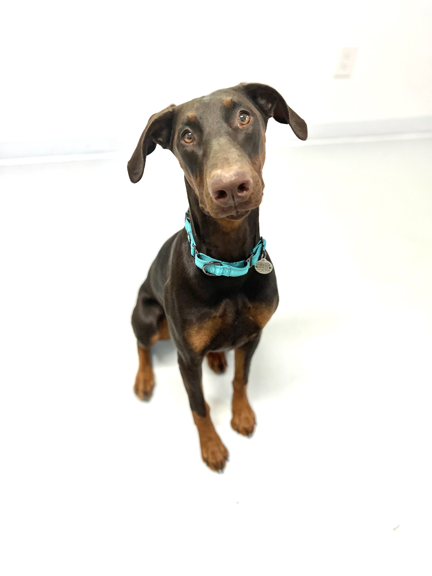 Poppy is a 7 month old female Doberman. Allll puppy, this sweet girl believes everything is a toy or game to have fun with. She goes 100%, naps, and repeats. Poppy would love an active family, with the patience and dedication to keep up with her training. She loves to learn and is very smart. Poppy is good with other dogs, and loves to be by her people. She is working on being ok spending a bit more time alone, and learning that the crate is not a bad place. Poppy will enjoy following you around, joining you on adventures, attending training, and getting her ears and belly rubbed.