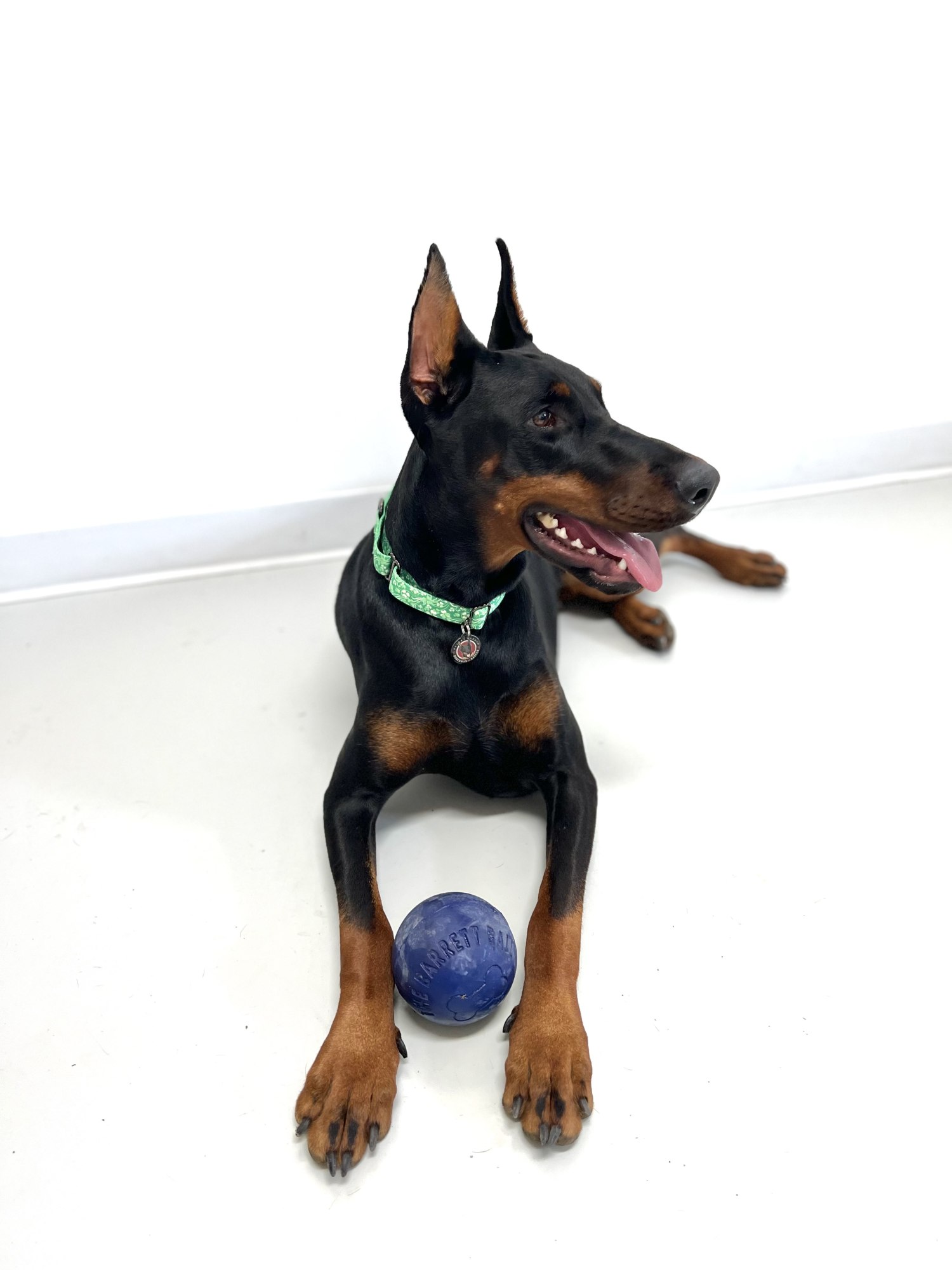 Kella Kella is a one year old female Doberman. She will be available for adoption as soon as we get to know her. Kella