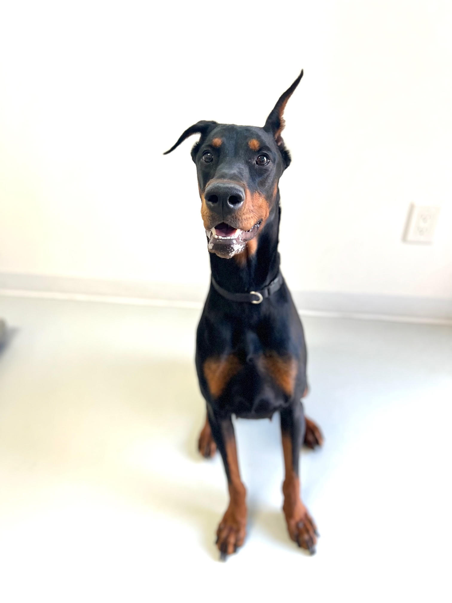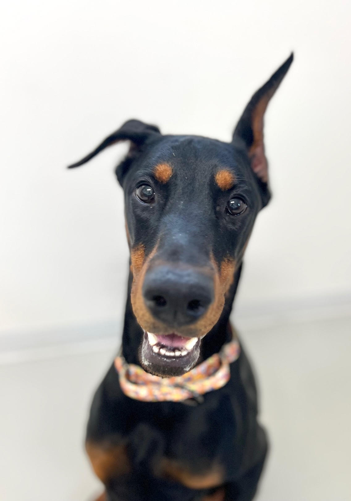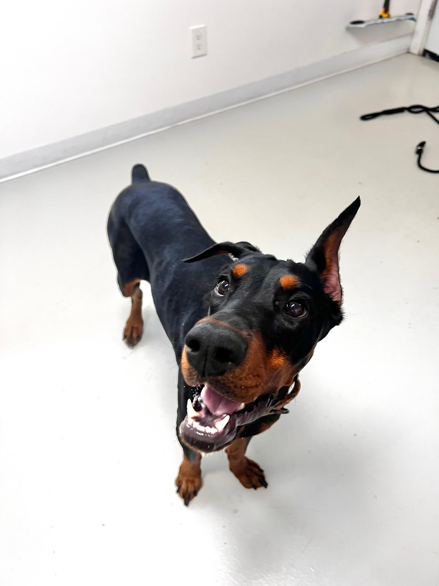 Doah is a 2 year old crop and flop cutie. This girl gets along with everyone and loves to play, play, play. While Doah has lots of energy, she also has a sense of calm while she takes in the world around her. Doah is crate trained, loves to ride in the car, and enjoys a game of fetch. Doah is a fan of affection, and will stick close to you for snuggles and pets. Doah also has a sensitive side, and can be startled by sudden movements or loud noises. Ongoing positive socialization and training should help with this. Doah will melt your heart when you call her name and she tilts her head with her crop and flop.