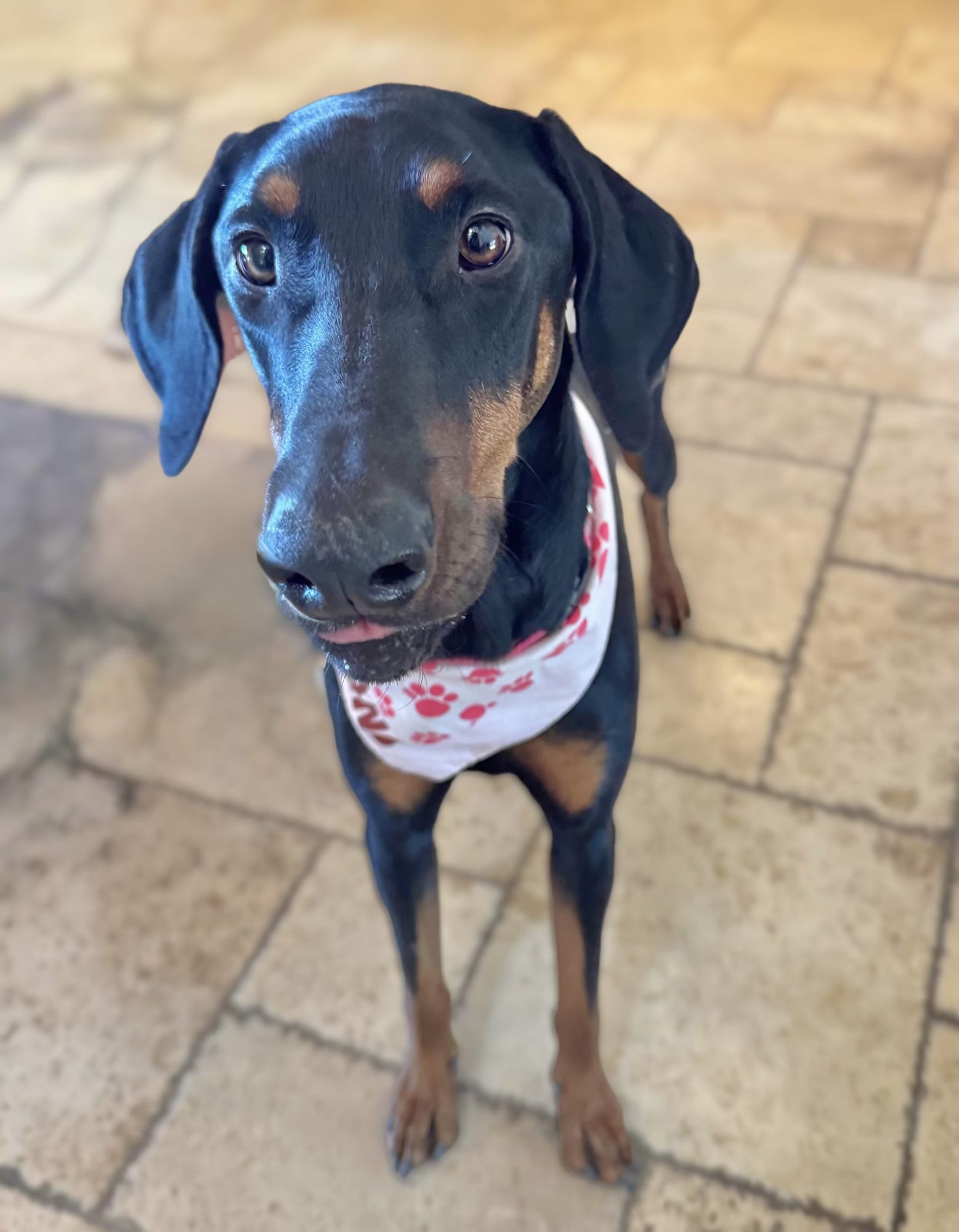 Luna Miel – Coming Soon! Luna Miel is a 1.5 year old female Doberman. We are just getting to know her, and she will be available for adoption soon. Luna Miel